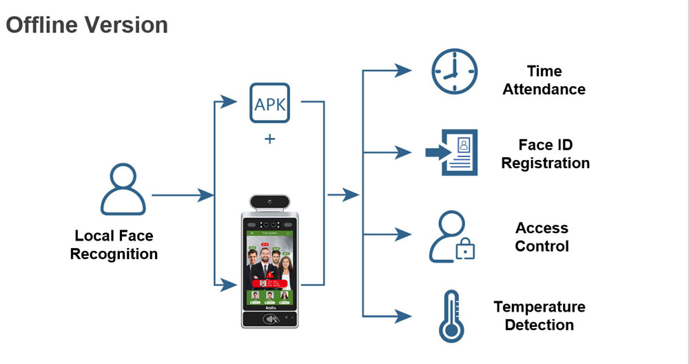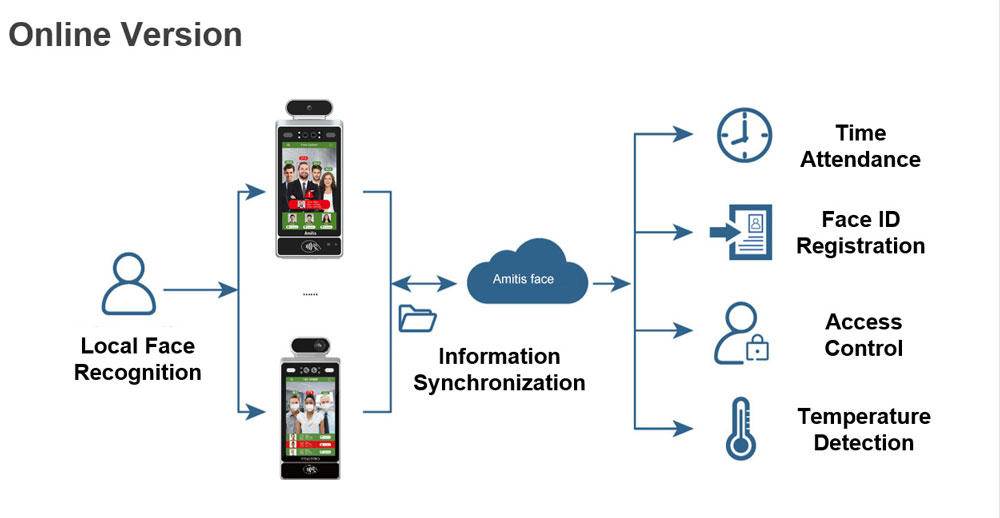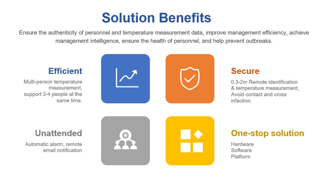 Combined with a higher-precision infrared thermal imaging sensor, infrared body temperature measurement methods are more diverse and convenient for daily traffic needs. This solution can read multi-person body temperature at the same time, so it can solve the needs of fast-flowing and large-scale population temperature screening. With the face recognition technology, it is widely used in the security control of smart cities.